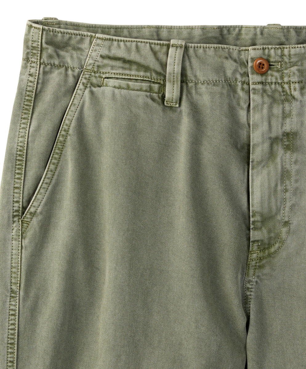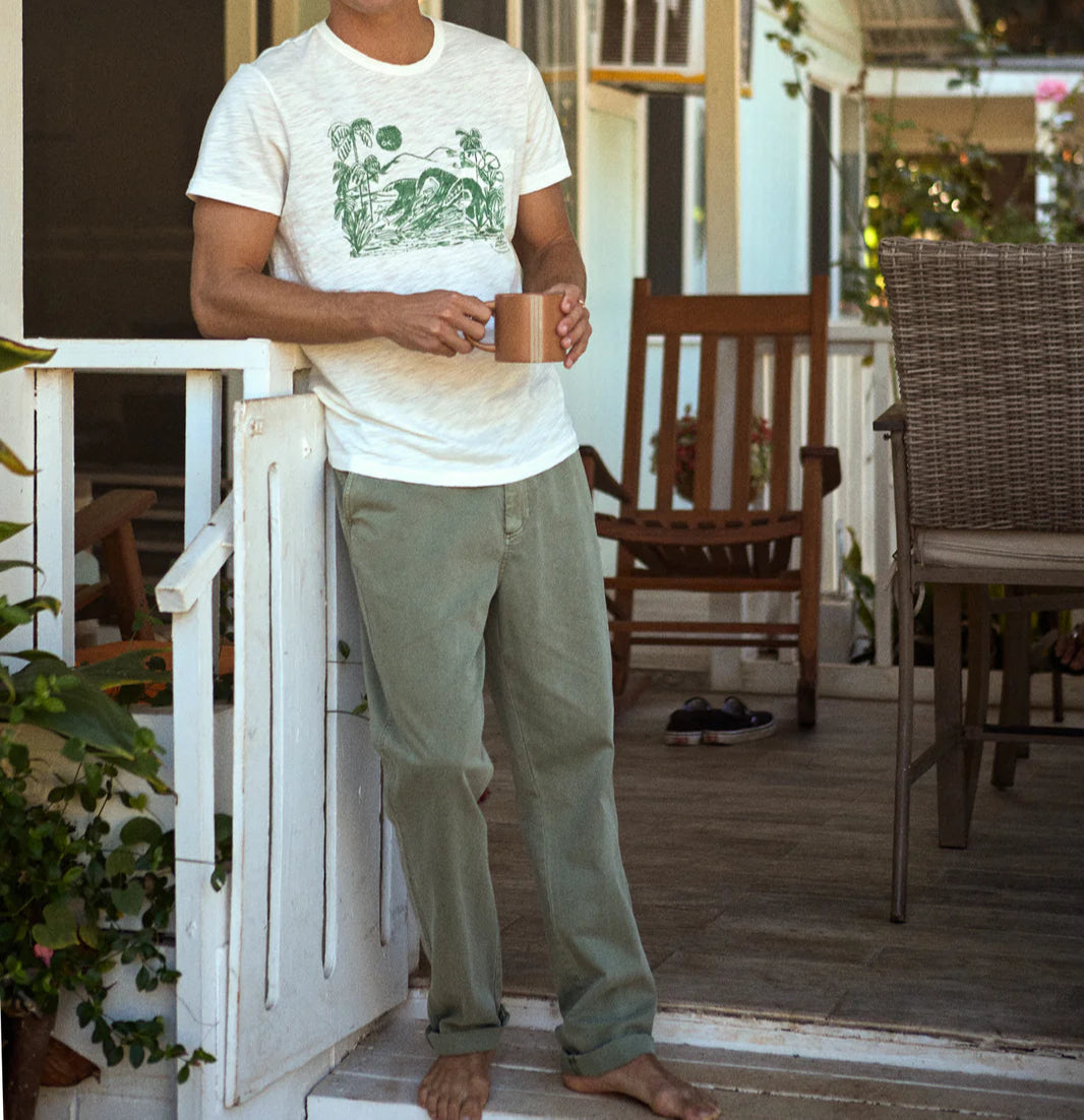 Each pair is garment-dyed for a lived-in look and washed color finish, making them instantly feel like an old favorite. Designed with a Hollywood waistband, front slant pockets with a coin stash, and back welt pockets, they deliver everyday function without sacrificing style. A zip fly with a corozo nut button closure completes the details for a timeless, sustainable essential.