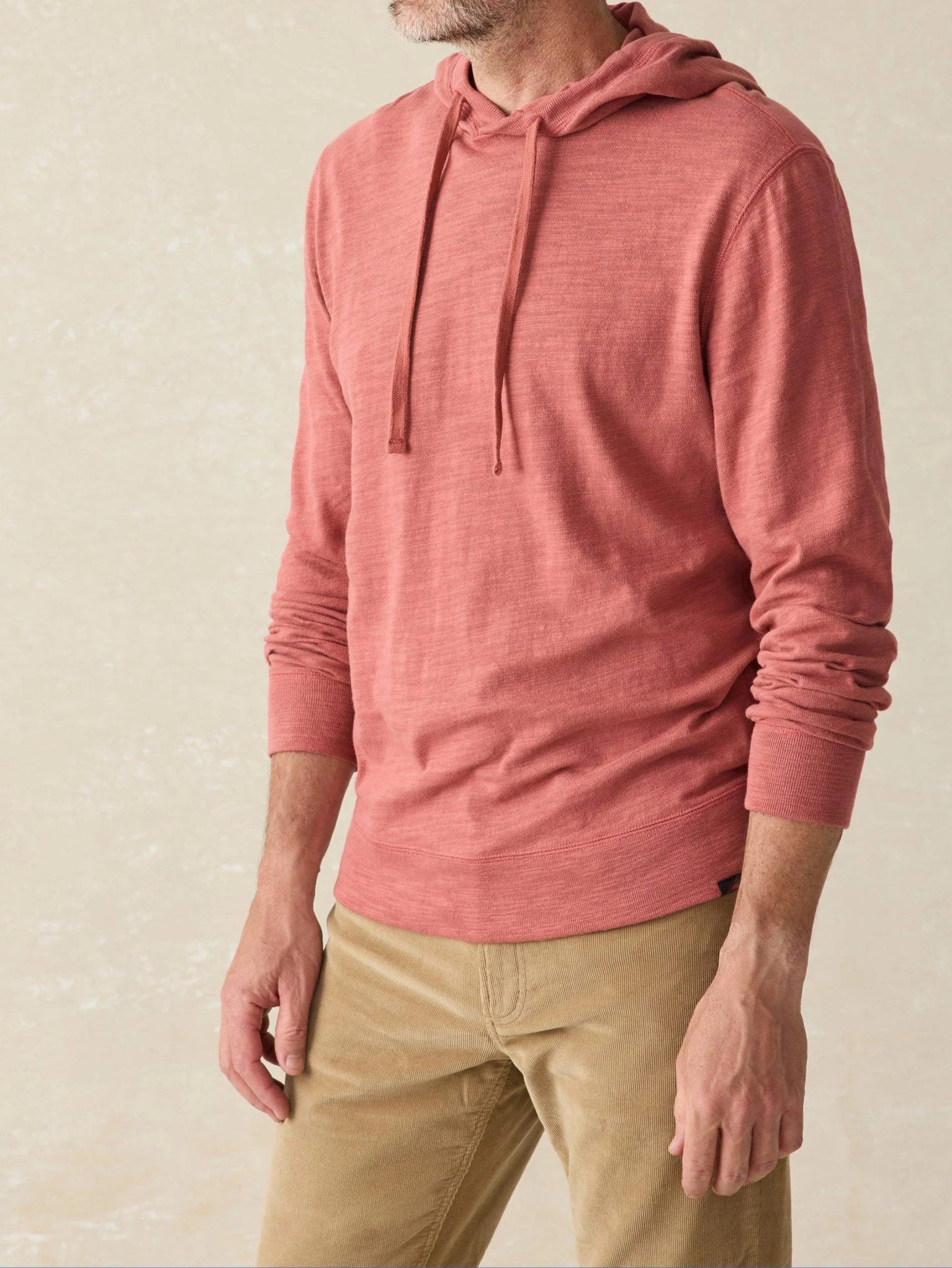 Our slub knit fabric is crafted from high-quality cotton and combed for exceptional texture and softness. The perfect layer, this hoodie does all the work of a sweatshirt — featuring a classic relaxed fit, knit ribbing at the collar, cuffs, and hem, and cinchable hood — without the added weight. Get one, and feel what we're talking about.