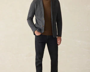 The Faherty Inlet Knit Blazer in Black Sky Melange brings effortless sophistication to everyday wear. Tailored from Faherty’s signature knit fabric, it looks refined like a blazer but feels as soft and flexible as your favorite sweatshirt.