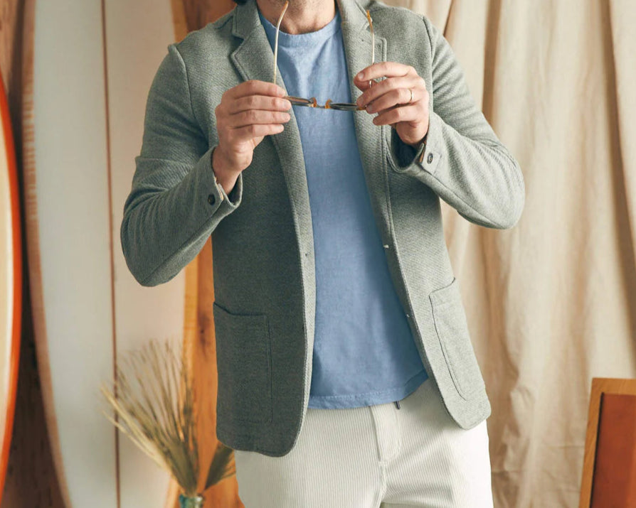 Made with our signature loopback knit fabric, it’s exceptionally soft and naturally stretchy while keeping its tailored shape. Elevated yet unstructured, this is the blazer made for guys who don’t usually wear blazers.