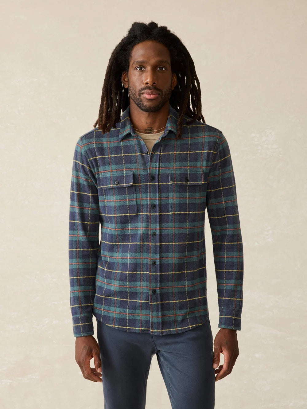 Faherty Legend Sweater Shirt Mossy Elm Plaid