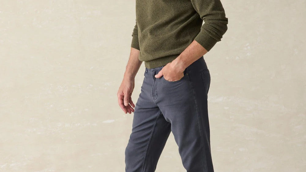 The look of premium denim meets the feel of your favorite sweats. The Faherty Stretch Terry Jeans in Navy with a 32-inch inseam feature an ultra-soft, 4-way stretch terry knit that moves with you all day while maintaining a sharp, tailored appearance.