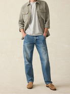 Shop the Faherty Sunwashed Tee at Après Surf Shop in Provincetown. Soft organic cotton, coastal style, perfect for everyday wear.