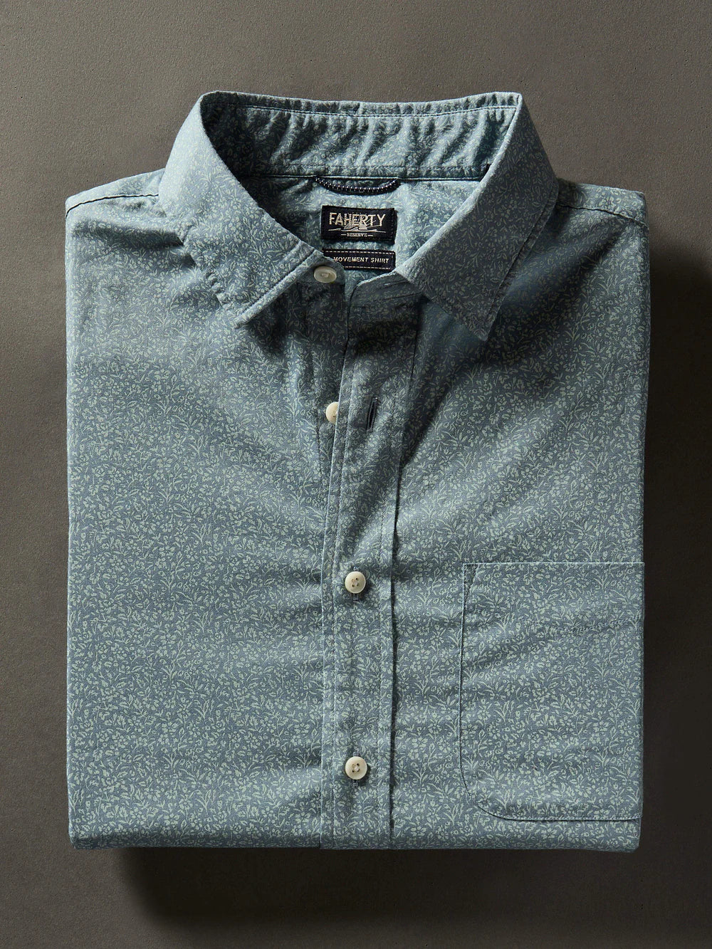 Faherty SS Movement Shirt – Sea Storm Ditsy | Lightweight Men’s Short Sleeve Button-Down