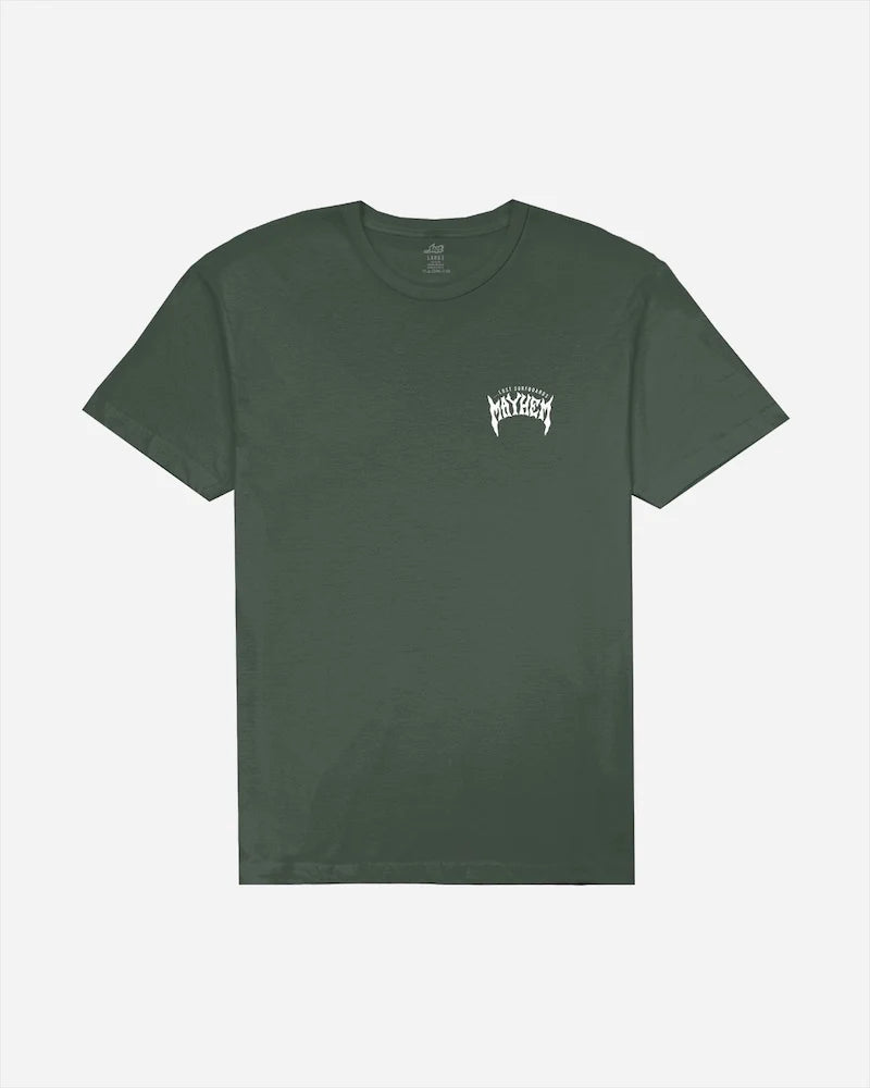 Mayhem Designs Tee – Pine Green | Classic Surf Graphic T-Shirt