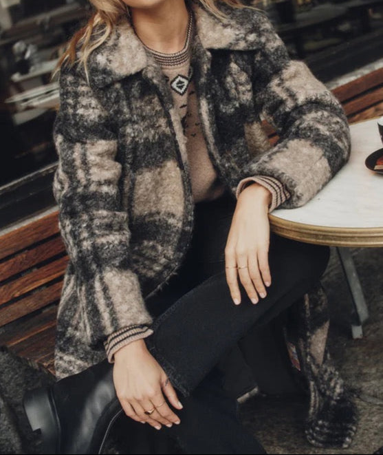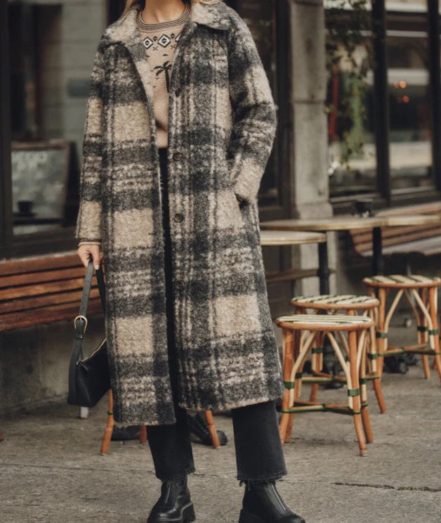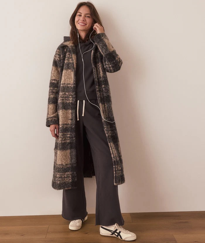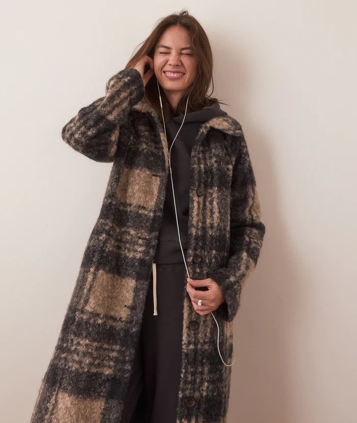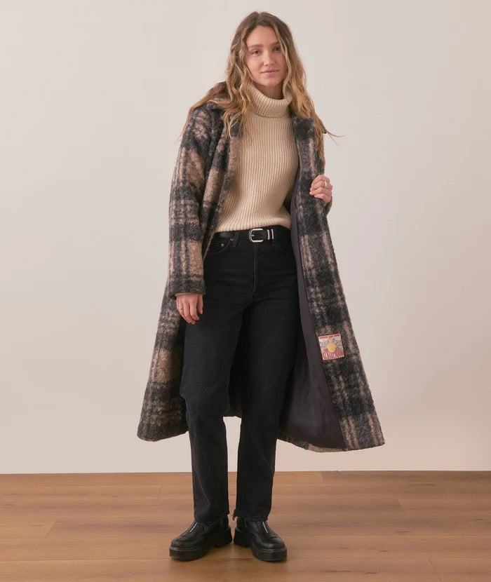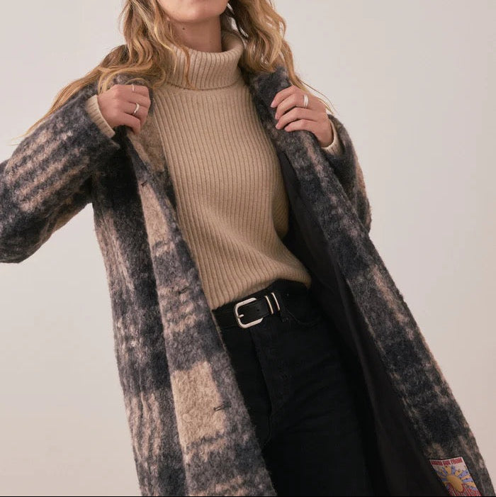 This is the coat that'll make winter a little warmer and a lot more stylish. Whether you're casually walking the dog or making an entrance at that holiday party, this beauty has you covered—literally. Crafted with a gorgeous textured plaid in a perfectly neutral palette, it's easy through the body and cozy without being bulky. Lined for warmth, loaded with interior and exterior pockets, and complete with a little "sending sun from SF" internal patch for good vibes.