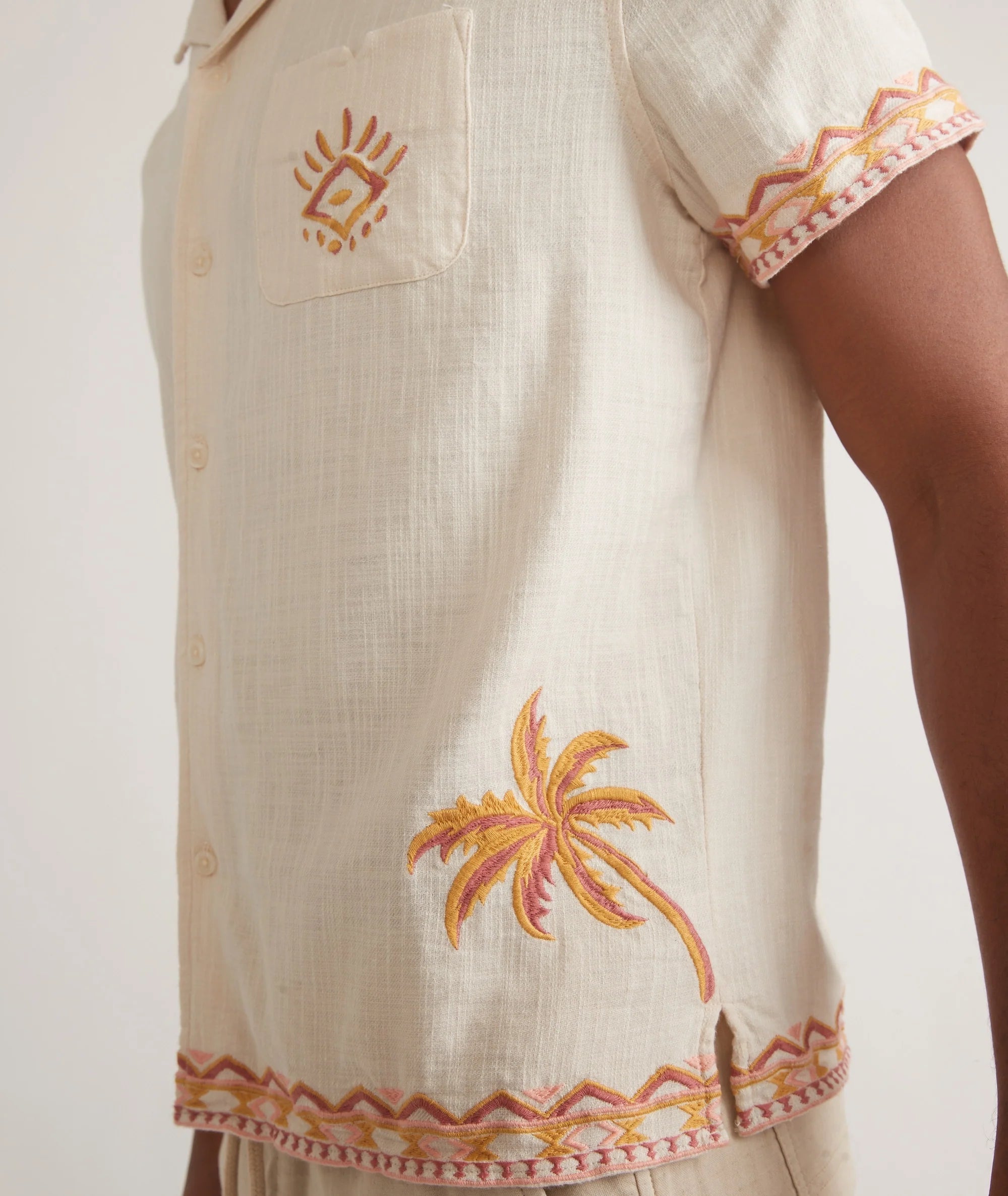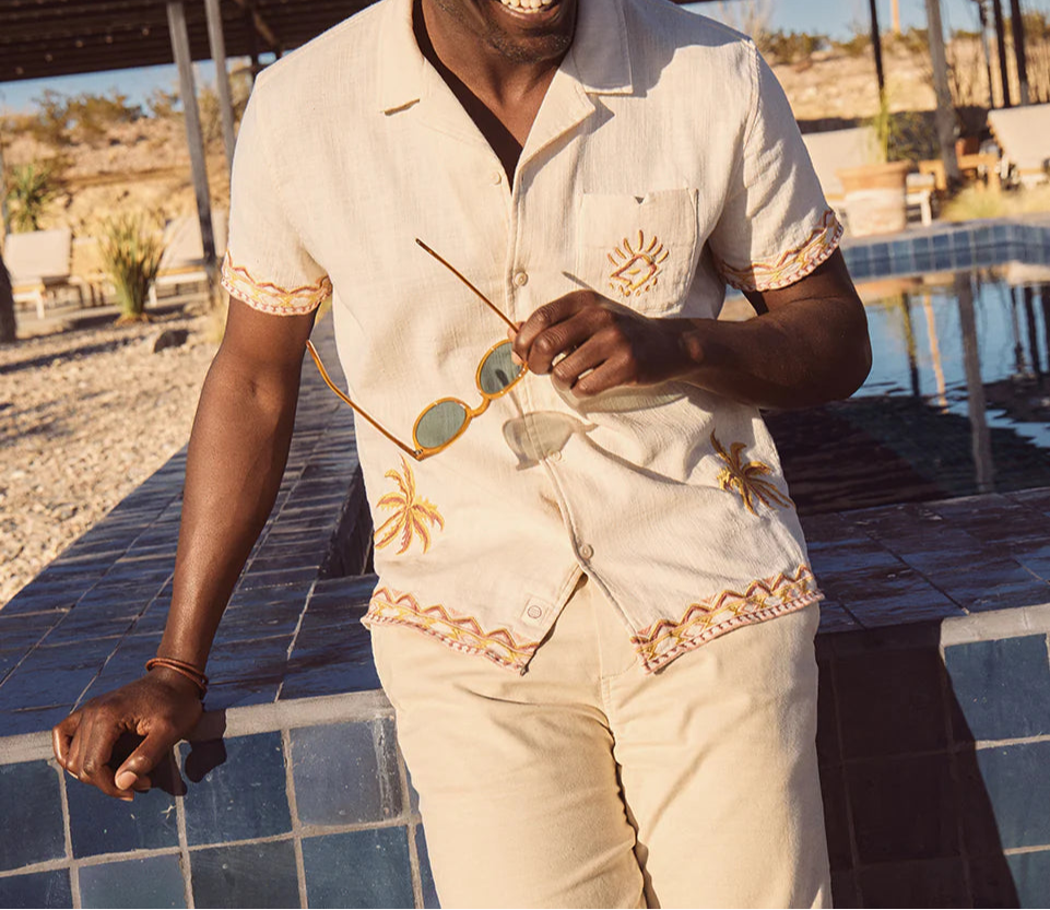 The classic resort shirt gets a fresh update with subtle embroidered detailing that sets it apart. Lightweight and breathable, this shirt is made for warm weather and easy living. Whether you’re heading to the beach, a summer dinner, or just keeping things relaxed, it’s a versatile piece that brings effortless style to every occasion.