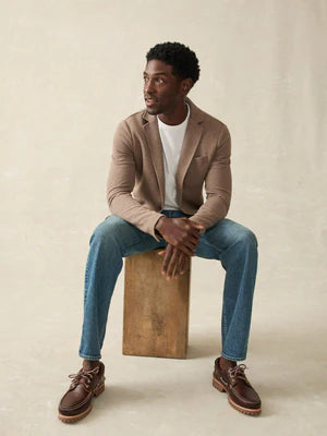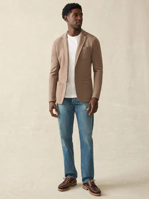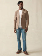 Our definitive sport coat leads with big-time comfort but is finished with top-shelf craftsmanship. The ultimate travel companion, it's easy to care for, making it the perfect piece to throw into your carry-on or wear right off the plane and into the boardroom. Elevated yet unstructured, the signature loopback knit fabric is ridiculously soft, and stretchy, while still retaining its shape. Meet the blazer especially made for guys who don't wear blazers.