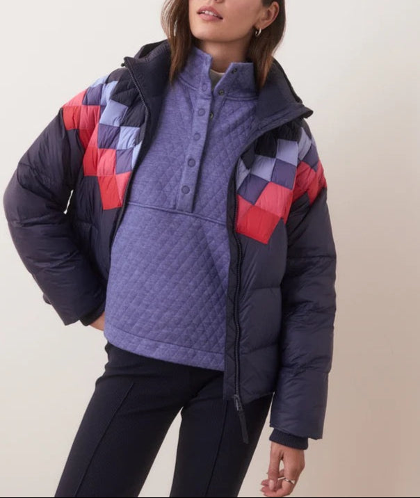 Because Fair Isle deserves more than just sweaters. This puffer is unlike anything you own, with bold, eye-catching tones that take center stage. Designed with a relaxed fit that hits at the hip, it offers cozy comfort with modern style. A cinchable hem allows versatile looks, while the removable hood adapts to changing weather. Thoughtful details like interior and exterior pockets keep your essentials secure, and our signature “Sending Sun from SF” patch makes this jacket a true statement piece.