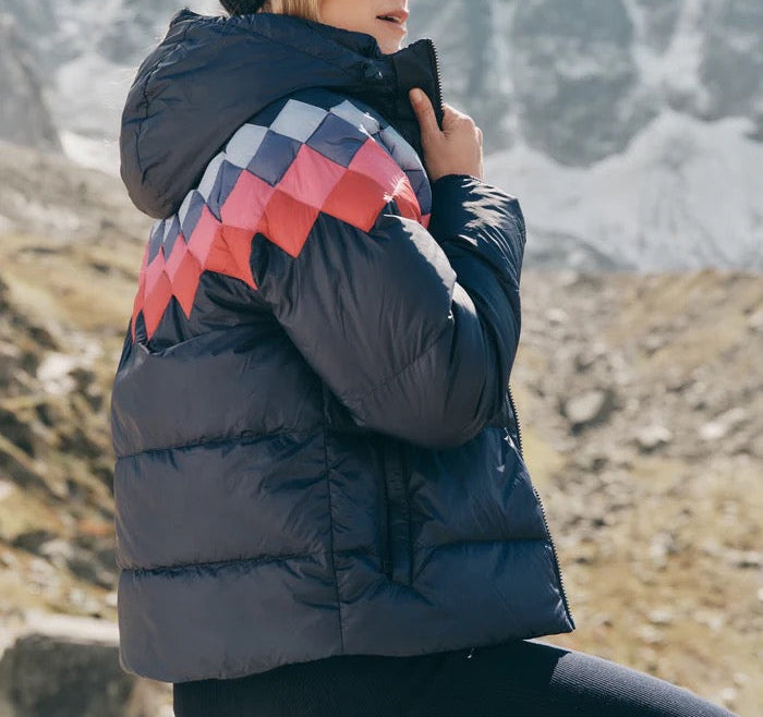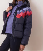 Fair Isle Inspired Recycled Nylon Puffer Jacket – Bold Winter Statement Coat