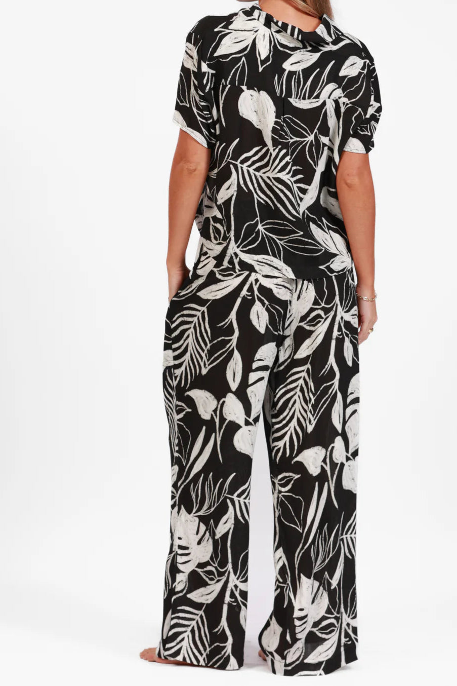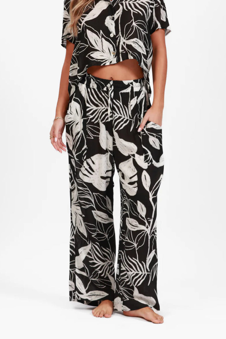 Vibrant Santorni Uber Print Wide Leg Pant in soft viscose. A flowy wide-leg design for easy elegance. Great for vacations, casual events, and sunny days.