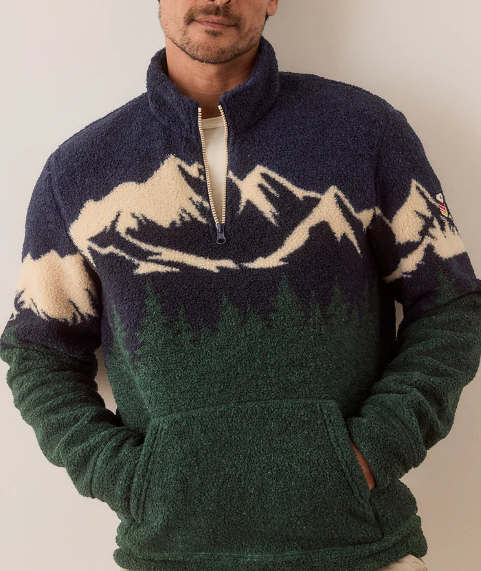 Archive Alpine Sherpa Pullover Navy Mountain Scene