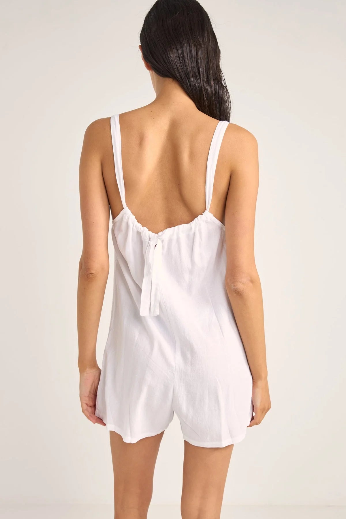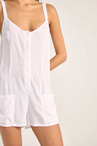 The Jayda Playsuit by Rhythm offers a chic and effortless look, perfect for warm-weather days. Crafted from a lightweight fabric, this playsuit features a relaxed fit with adjustable shoulder straps, front button detailing, and side pockets. The white hue adds a fresh and versatile touch to this summer staple.
