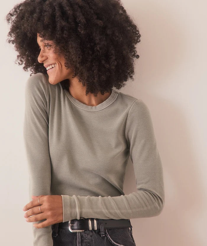 Meet the freshest take on our Lexi Rib Sun-In fabric. This style has been garment dyed for a naturally sun-faded, broken-in look and feel. The fit? It's a fitted, slightly cropped long-sleeve with a classic crew neckline. It's absurdly soft, comfortable, and has a great thick texture. Perfection? We'd like to think so.
